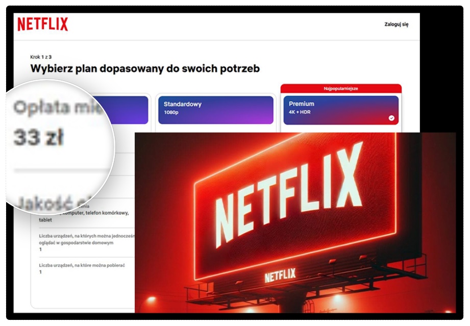 Netflix 33 Podstawowy pakiet Netflixa kosztuje 33 zł. Czy kiedykolwiek kupiłeś cokolwiek, co kosztowało 33 złote? Czy taka cena wydaje Ci się normalna? typex.info 15 stycznia 2026